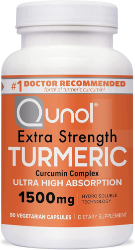 Qunol Turmeric Curcumin Capsules, 1500mg Extra Strength Supplement, Patented Hydro-Soluble Technology, Alternative to Turmeric Curcumin with Black Pepper, 90 Veggie Capsules