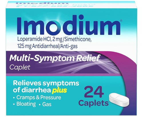 Imodium Multi-Symptom Relief Caplets with Loperamide Hydrochloride and Simethicone, Anti-Diarrheal Medicine for Treatment of Diarrhea, Gas, Bloating, Cramps & Pressure