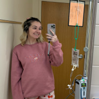 I was diagnosed in December 2023 with B-Cell ALL while I was pregnant. I delivered a healthy baby in between chemo rounds. Successfully completed induction and consolidation with chronic neutropenic fevers. I am now in maintenance which was expected to be an easier road, but proving to have challenges of its own. Now treatment has been changed to fit my body’s reactions to chemo & immunotherapy, lengthening the process. Experiencing 2 years and counting of chemo, I’m learning what is keeping me the most comfortable through chemo rounds, hospital stays, and in between. (Why is everything pink?: Vincristine, the chemo I’m currently on, is derived from the Madagascar Periwinkle. Which is pink! As both a plant and art nerd, I couldn’t pass up the opportunity to assign this color to my chemo comfort items.) Migraine relief and skin care are a top priority of mine as migraines and irritated skin are some of my biggest discomforts with treatment (that can’t always be managed with meds). Followed by items to keep my temperature regulated going through fertility preservation with treatment & clothing that my port can be accessed comfortably with.